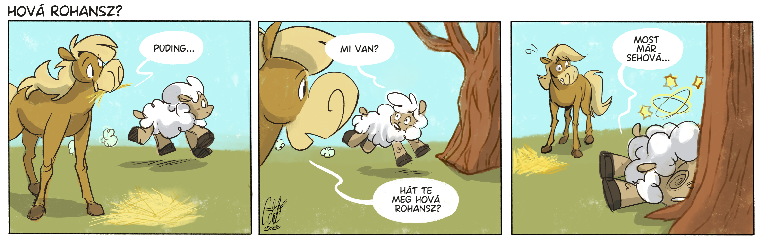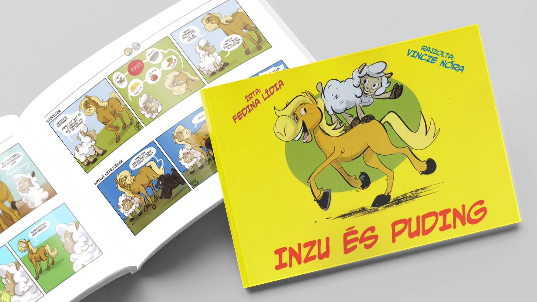 A series of comics strips about two animal buddies, a young horse and a rambunctious sheep. A collaboration between author Lídia Fedina and myself. Originally published bimonthly in Dörmögő Dömötör, later compiled into one book. (limited edition)